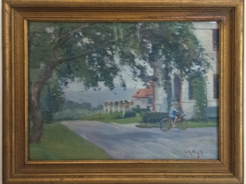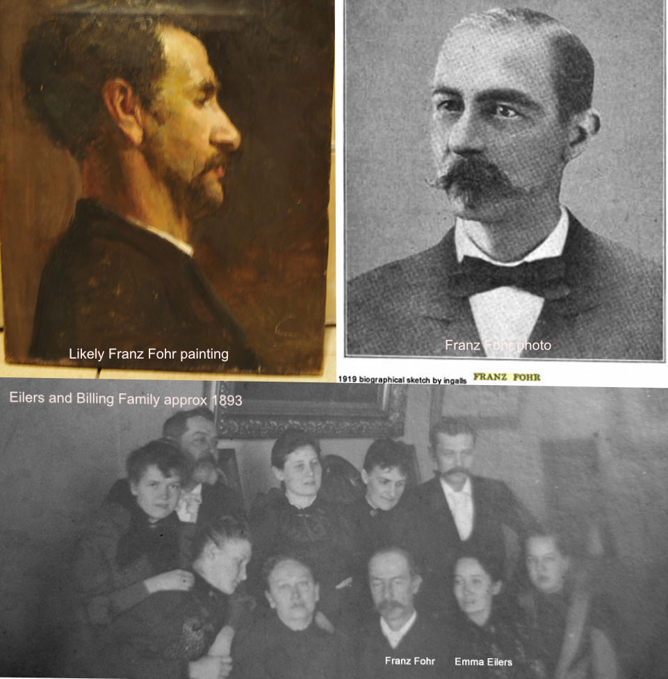 This is the only known portrait of a man by Emma. Fohr’s name is not listed on it and Emma did not sign it. The painting has always owned by the Eilers family and the painting a side-photo of Fohr look too close to be a coincident. The is an underlined “C” in the lower right, but that looks more like a later mark, perhaps by a child.